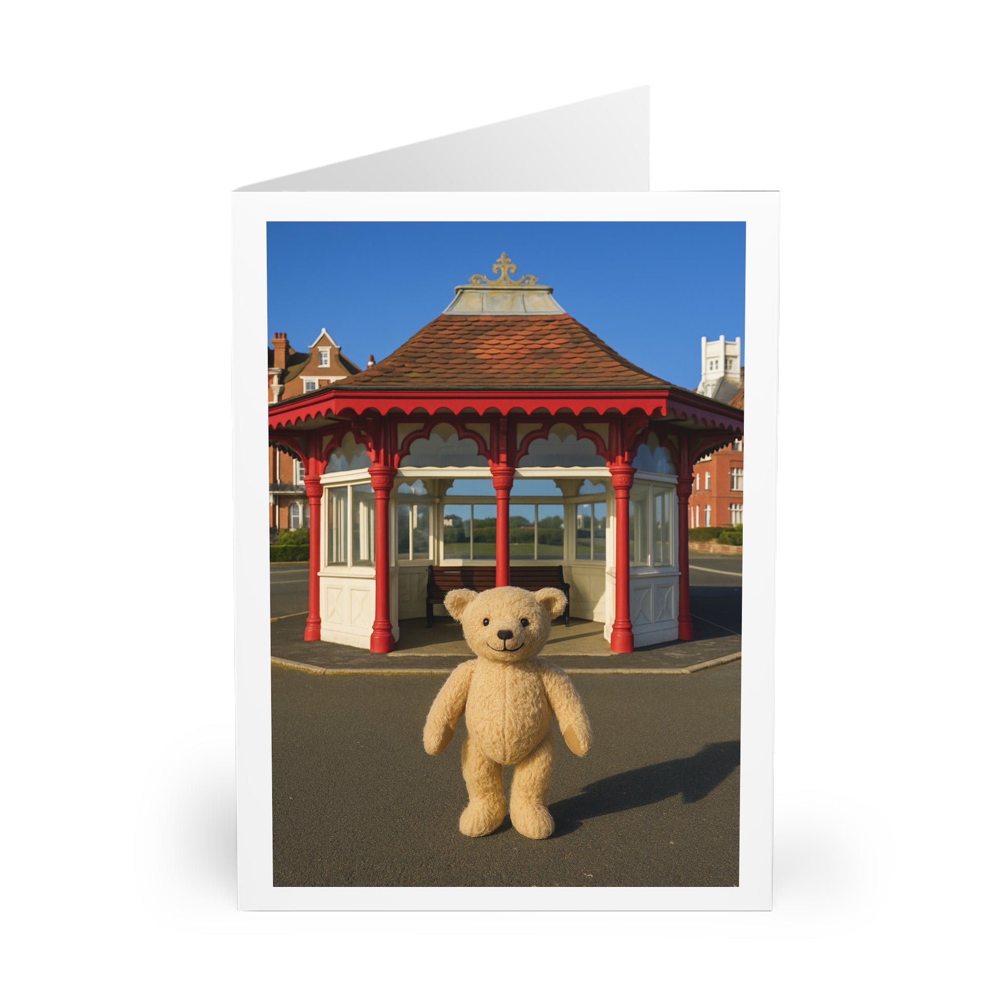 Teddy On Tour – Bexhill Shelter Greeting Cards (5 Pack)