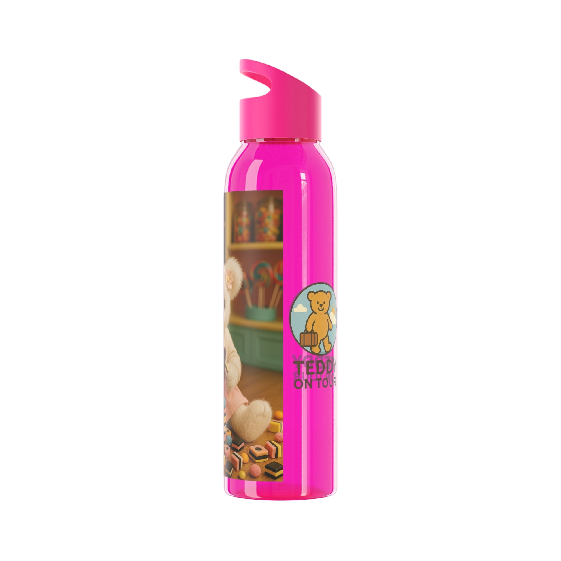 Teddy on Tour Bella in a sweet shop Sky Water Bottle