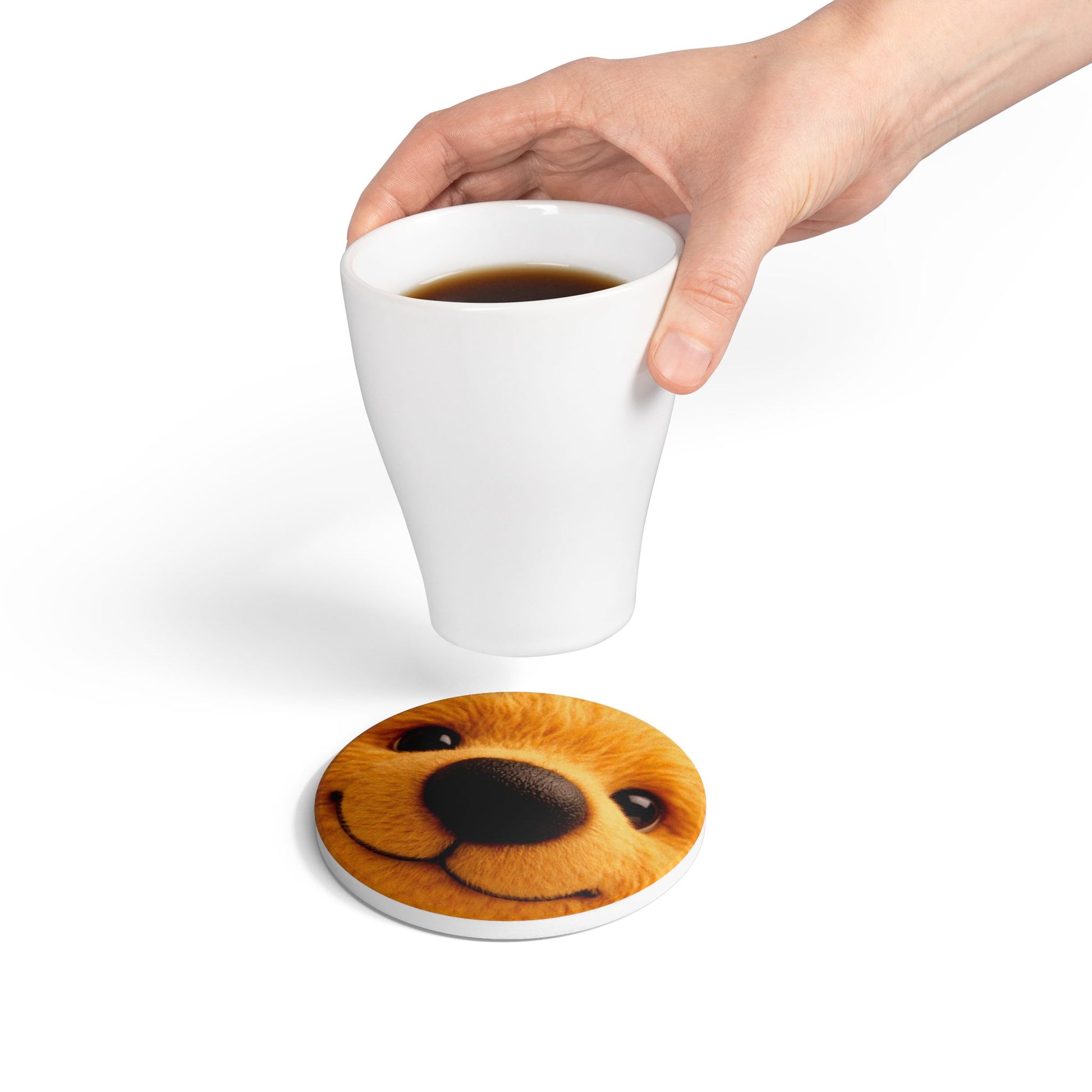 Teddy on Tour Close Up Scruffy Teddy Ceramic Coaster