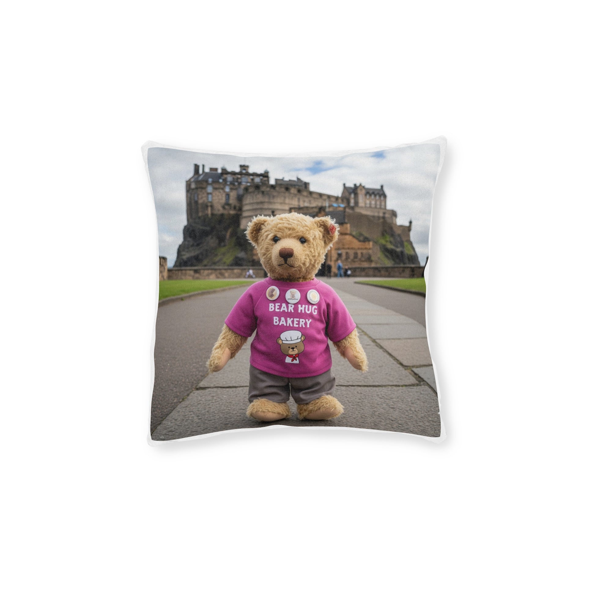 Teddy on Tour Olly in Scotland Square Pillow