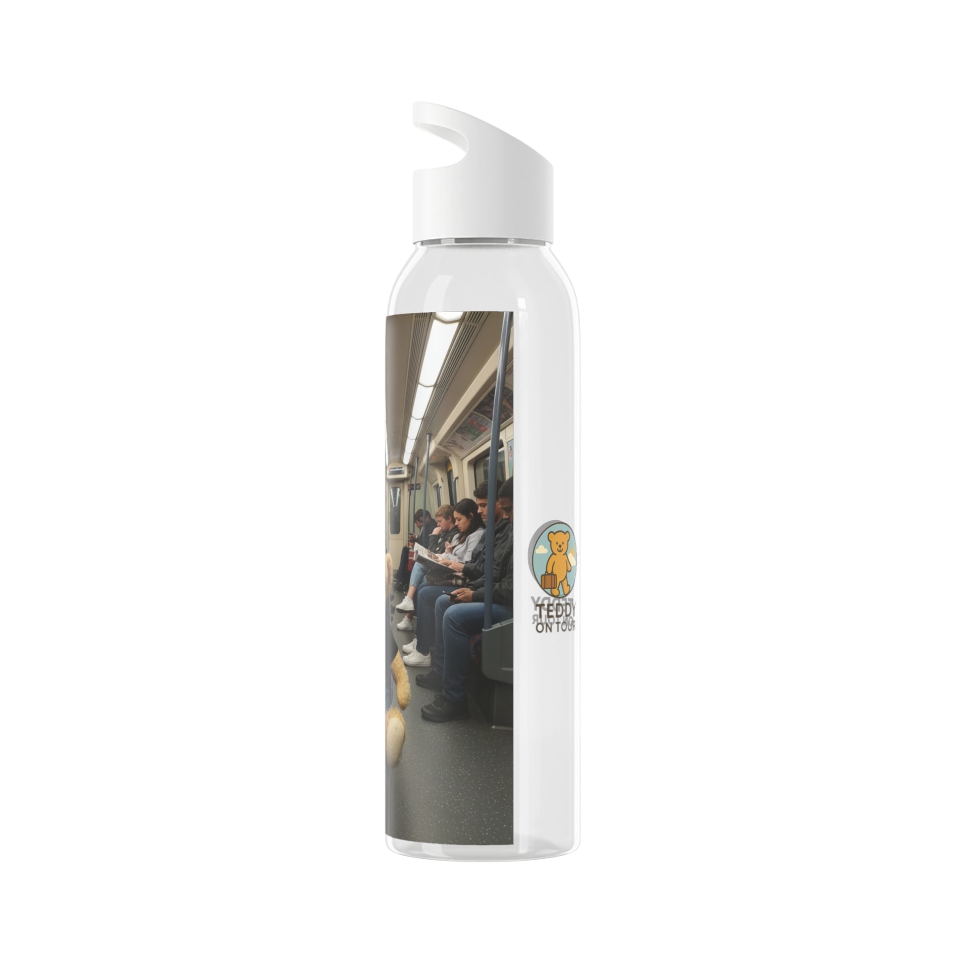 Teddy on Tour. A stylish way to carry around all your favorite beverages, this customizable reusable water bottle keeps you hydrated in a custom fashion. Made from the highly durable Eastman Tritan™ material, this water bottle has a generous 21.9oz capacity and features a twist-on lid for greater ease of use.