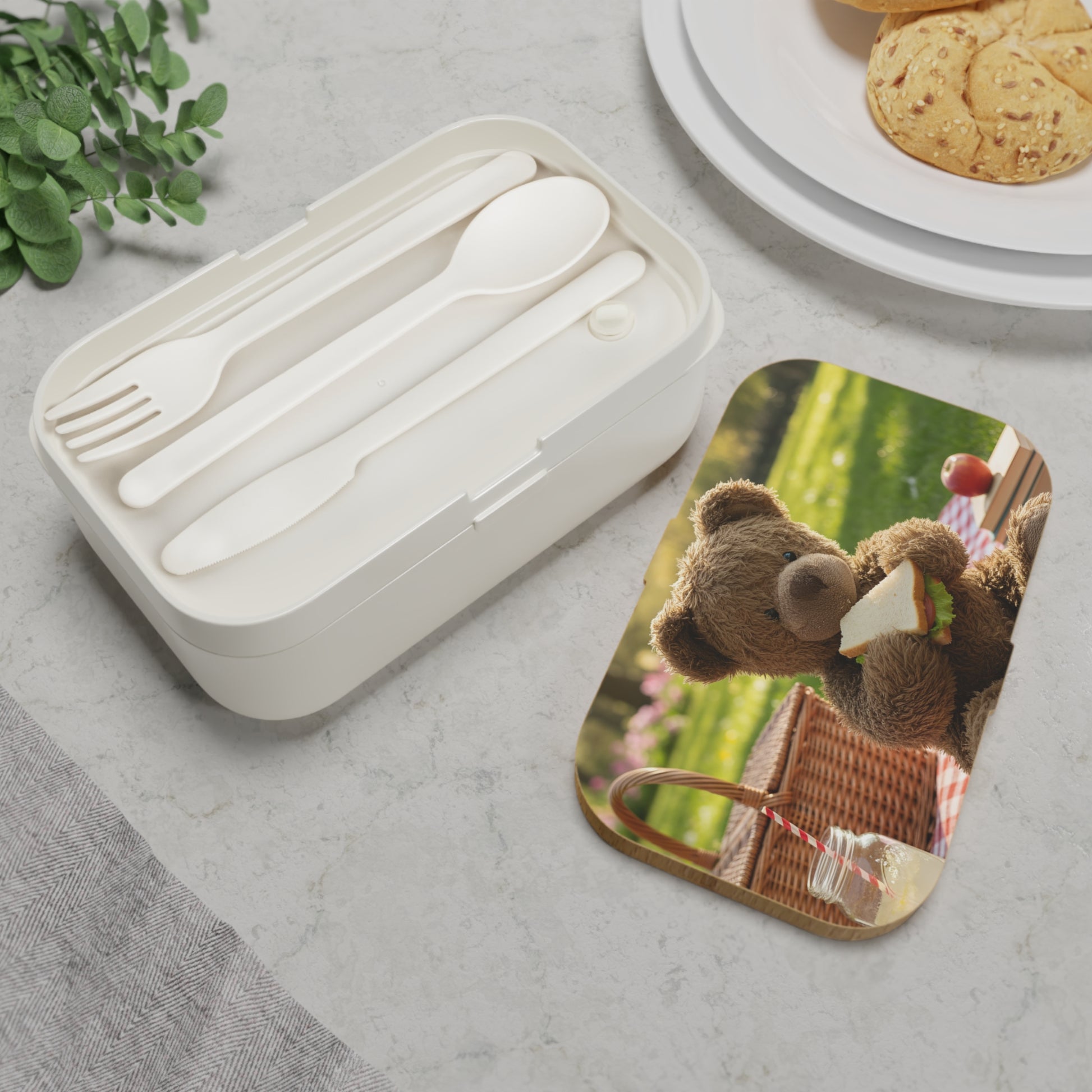 Teddy on Tour teddy in a sunny forest near a lake Bento Lunch Box