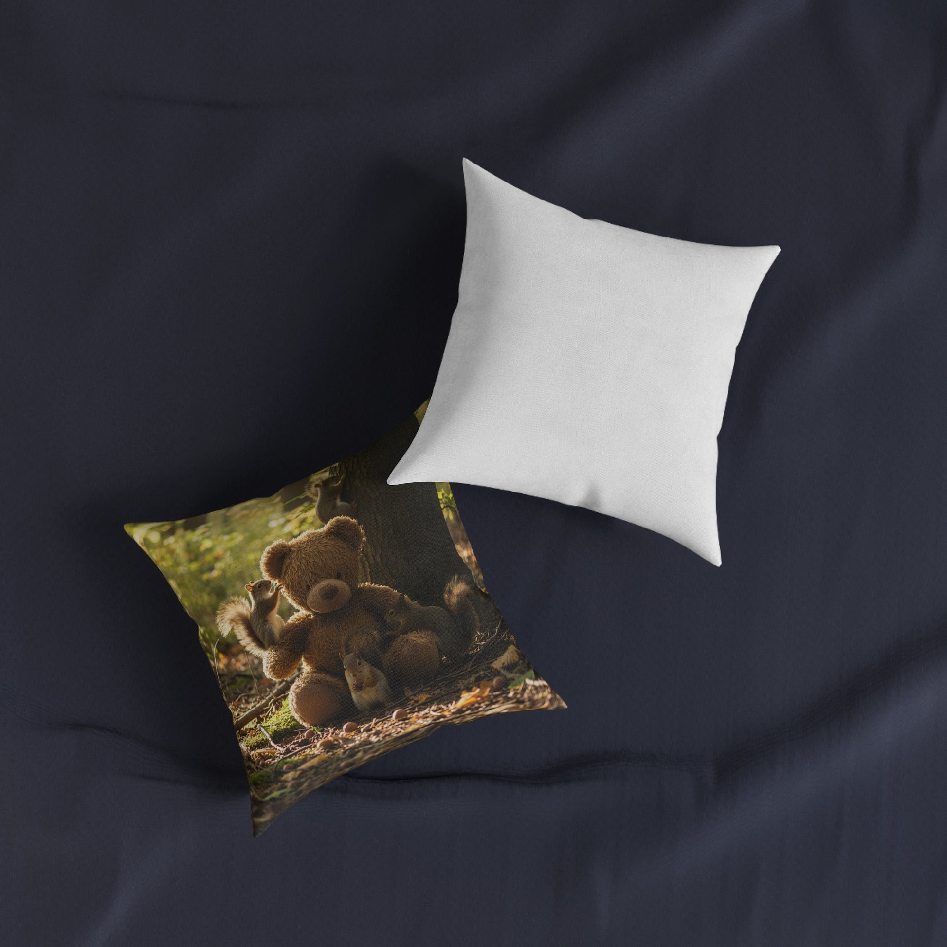 Teddy on Tour teddy in a sunny forest near a lake Square Pillow